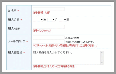 ご購入後、このフォームに必要事項を記載し送信してください。